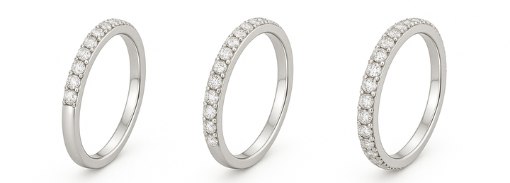 Semi eternity: Diamonds extend around three-quarters of the band, leaving a small plain section.