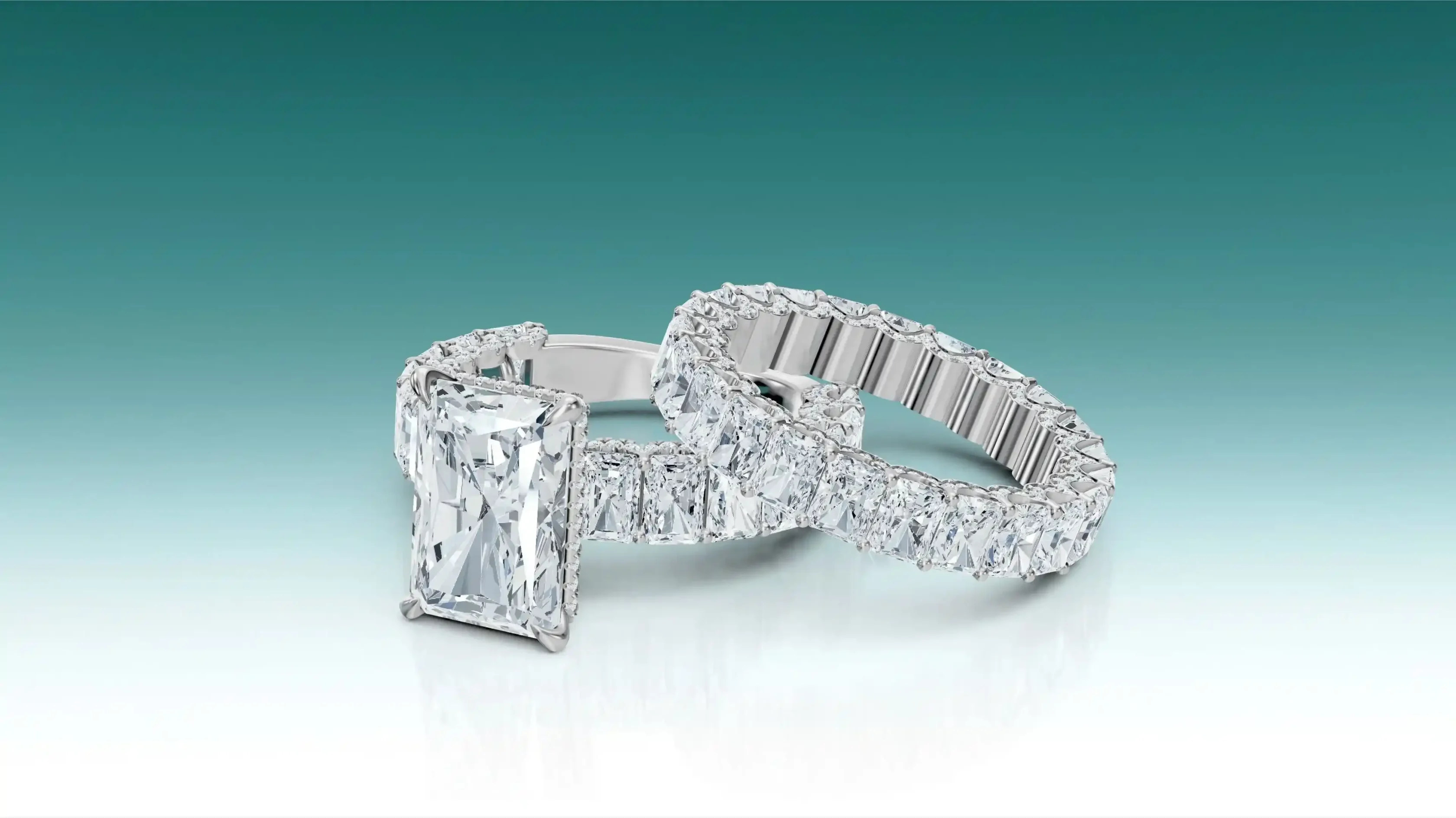 Radiant Diamonds merge the brilliance with a rectangular or square outline, showcasing striking fire and sparkle. Their beveled corners offer exceptional durability and a stylish flair. It is a hybrid shape that combines the faceted style of a round brilliant cut and the step cut of emerald-shaped stones. Typically 70 facets, strategically placed to increase fire and brilliance. Ideal for lively, fashion-forward personalities seeking intense sparkle and brilliance within a versatile shape.